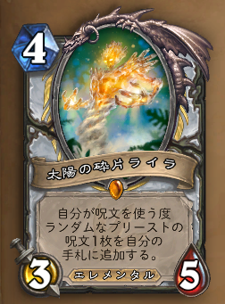 ここで追加された贖罪の大聖堂はプリーストだから許されていると言えるレベルのパワーカードで、倍々リーサルまでの繋ぎや急襲で無から盤面に干渉できるカニライダーとの相性の良さなど、ミニオン重視の構築に引っ張りだことなっています。真言・宴と併せて序盤を支えてくれました。残念なのは呪文でない点ぐらいでしょう。