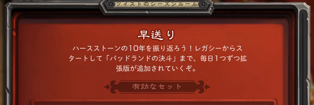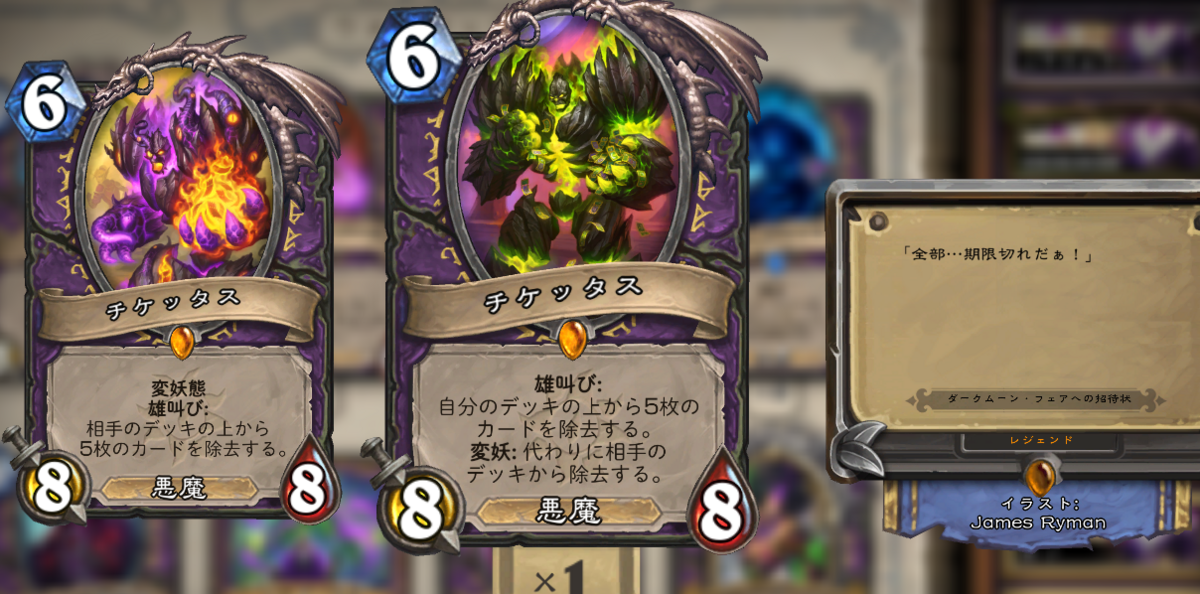 自分はワイルドプレイヤーでもあるのでパワーカードに魅力を感じないわけではないですし、ワイルドにも拡張ごとの変化はちゃんとあるのですが、「あの頃はこいつが活躍してたなぁ…」という気分を味わえる機会を増やして欲しかったのは事実です。代表例としてワイルドは太いフィニッシュ手段の無いコントロールに人権がありません。